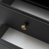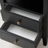 Özel lake cilası pirinç döküm kulp modeliyle yatak odanıza kattığı şıklığın yanı sıra depolamada da açık rafı ve çekmeceleriyle ön plana çıkan bir tasarım.