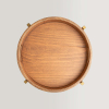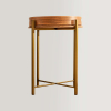Eskitme pirinç renginde metal ayakları ve doğal meşe kaplama ahşap tepsisi ile zarif ve zamansız bir tasarıma sahiptir.